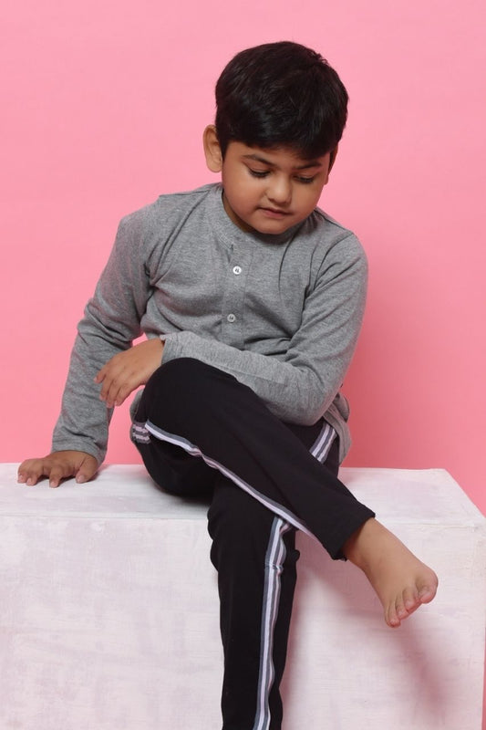 Grey and Black Co-ord Set Nightwear - Full Sleeves