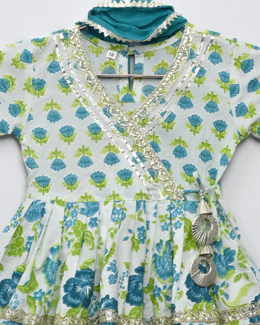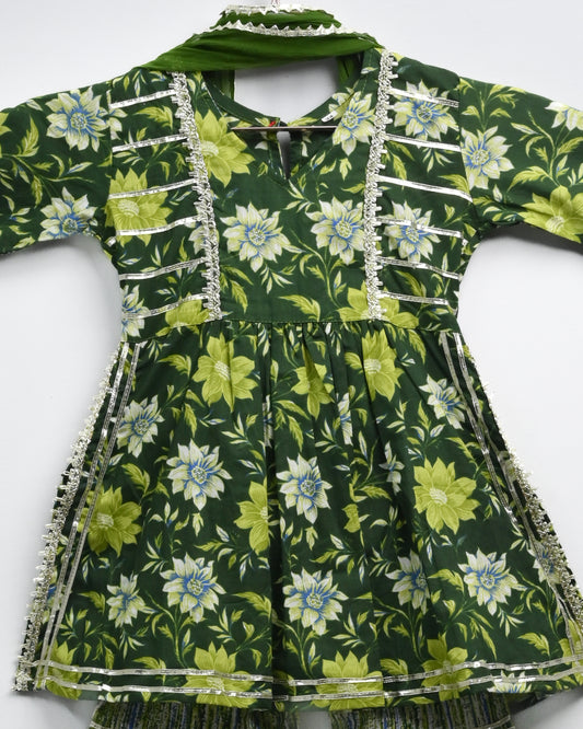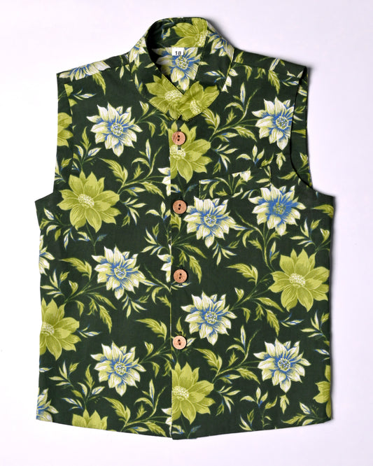Green Floral Three piece (jacket, kurta and pajama) set for boys