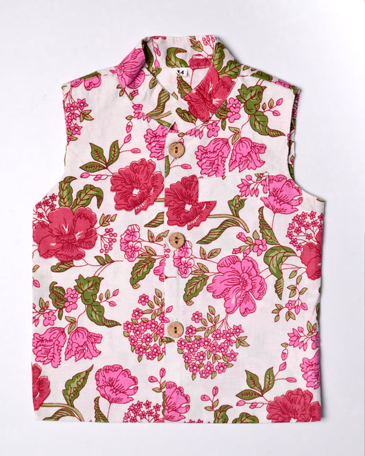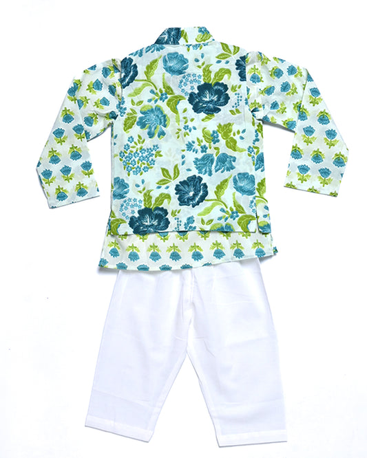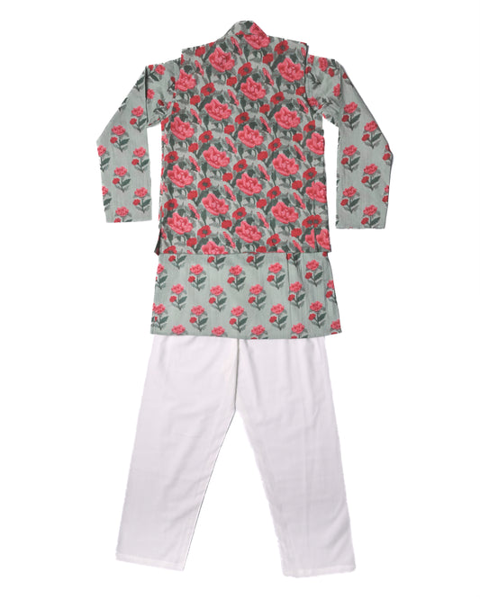 Rosey floral Three piece (jacket, kurta and pajama) set for boys