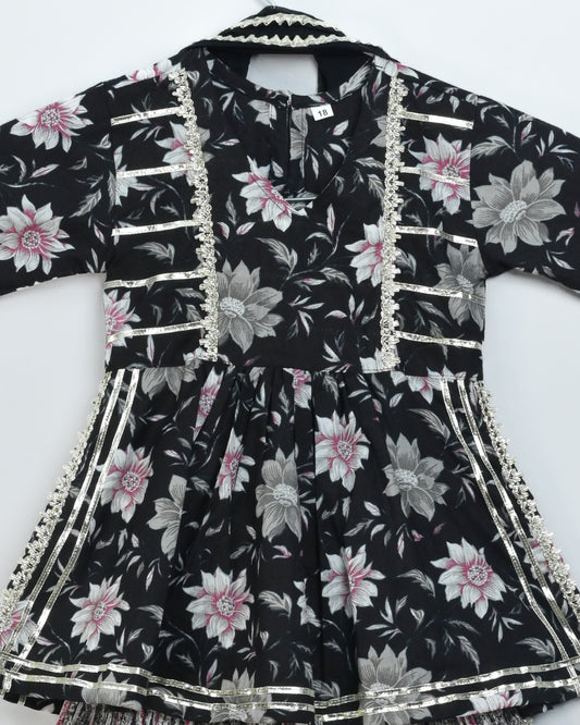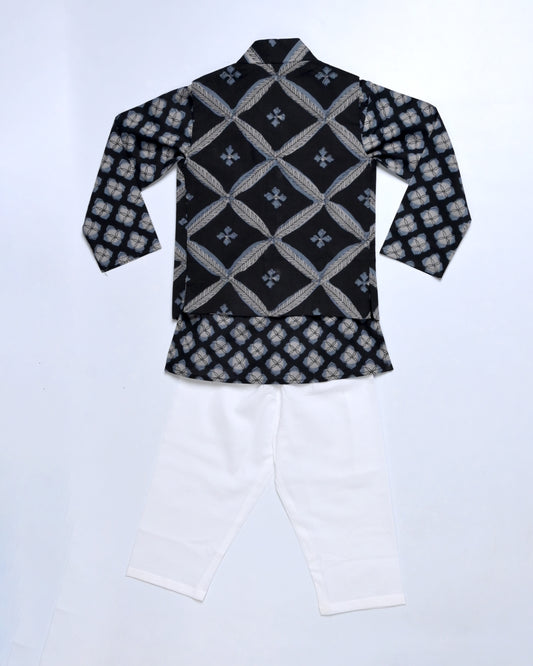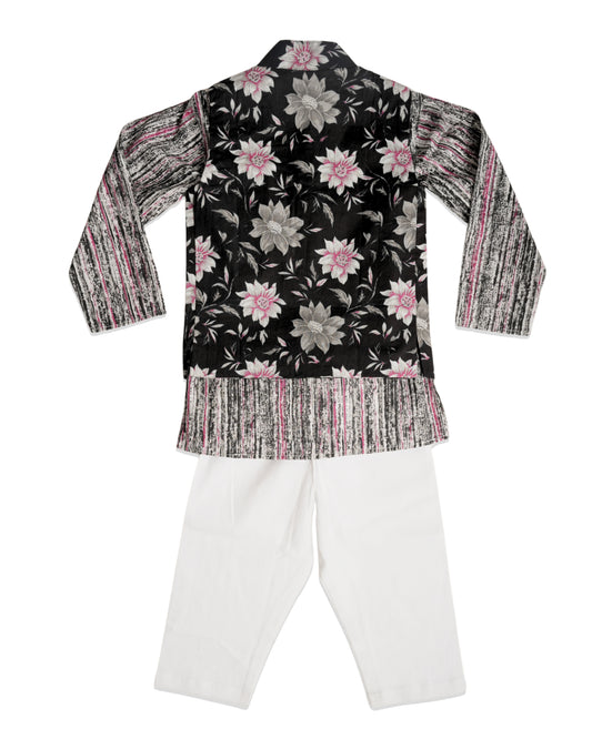 Black floral Three piece (jacket, kurta and pajama) set for boys