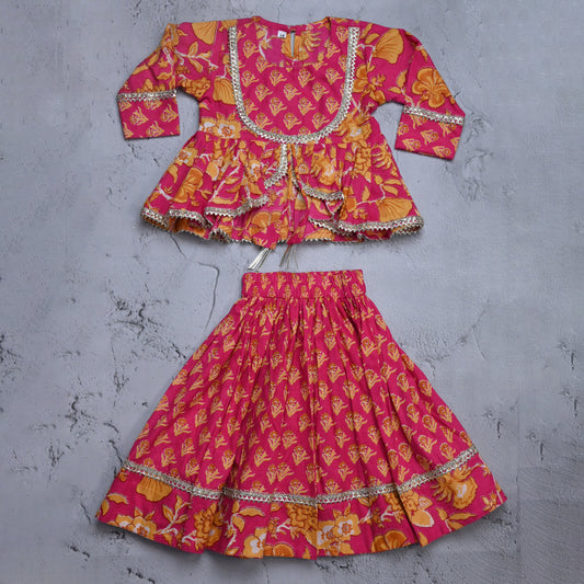 Pink yellow Three piece (jacket, kurta and pajama) set for boys