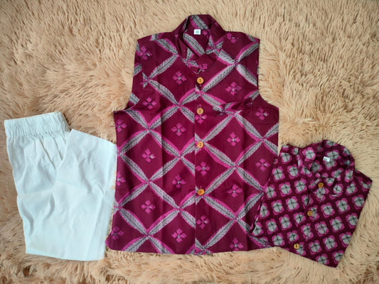Purple Heart Three piece (jacket, kurta and pajama) set for boys