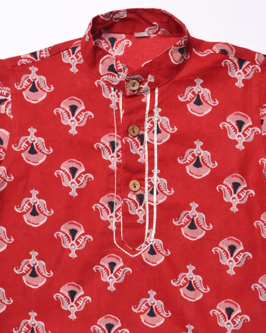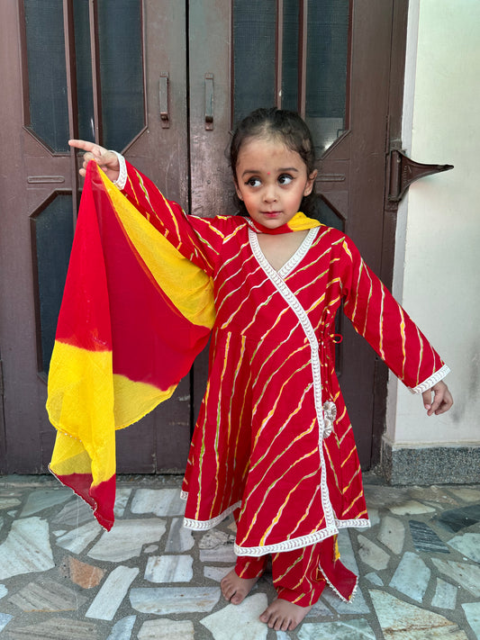 Red Leheriya girls pure cotton Suit Set-age 6 months to 18 years