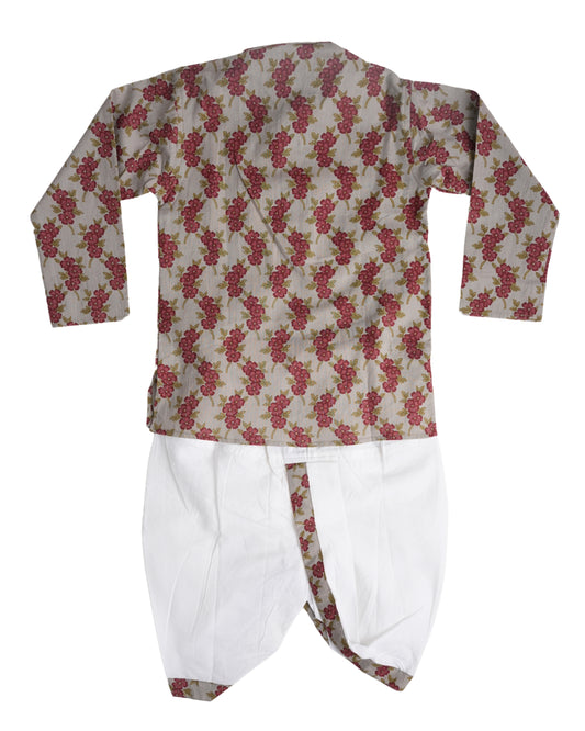 Smoky mehroon bloom pure cotton kurta and dhoti