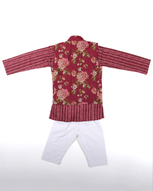 Mehroon Candy Florals Three piece (jacket, kurta and pajama) set for boys