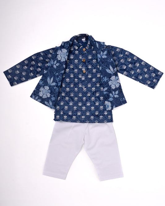 Blue Pea Three piece (jacket, kurta and pajama) set for boys