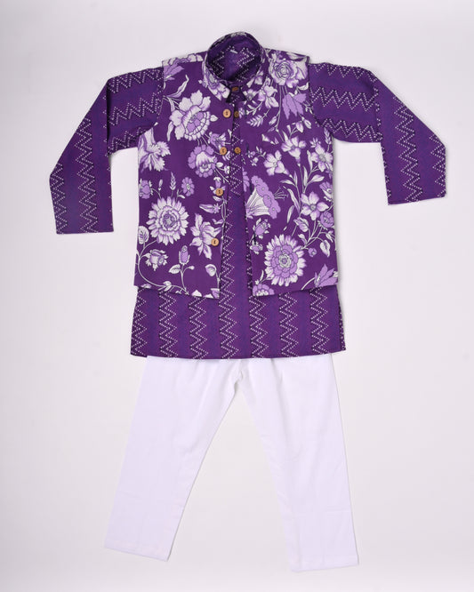Purple Navaab Three piece (jacket, kurta and pajama) set for boys
