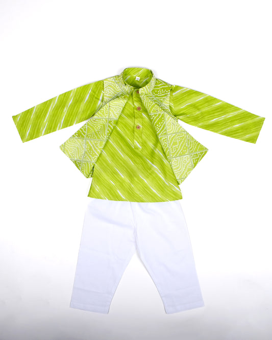 Parrot Green Three piece (jacket, kurta and pajama) set for boys