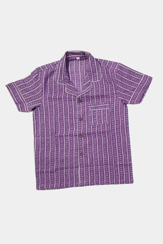 Purple White Stripe Kids Pure Cotton Bag Nightsuit